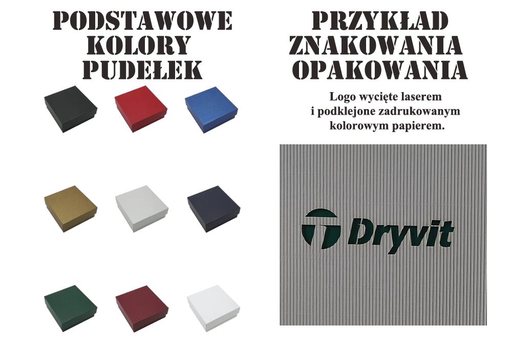 Jednym z największych atutów tego zestawu jest personalizacja opakowania. Pudełko może zostać oznakowane na dwa efektowne sposoby. Pierwsza opcja to wycięcie logo w wieczku lub ściance pudełka i podklejenie zadrukowanego, kolorowego kartonu. Daje to ciekawy efekt głębi – logo staje się „okienkiem” na kolor znajdujący się pod spodem, a samo opakowanie zyskuje wyjątkowy, indywidualny charakter. Druga opcja to elegancka technika złocenia, idealna dla marek premium oraz firm, które chcą podkreślić ekskluzywny wymiar prezentu. Złocone logo na pudełku wygląda luksusowo, przyciąga wzrok i świetnie prezentuje się na zdjęciach, materiałach marketingowych i w social mediach.